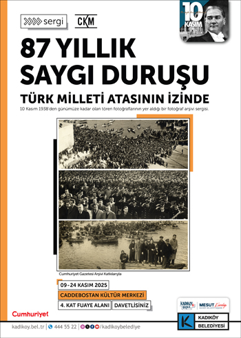 9 Kasım - 24 Kasım tarihleri arasında Caddebostan Kültür Merkezi 4. Kat Fuaye alanında "87 Yıllık Saygı Duruşu" başlıklı fotoğraf sergisi, sanatseverlerle buluşuyor.
