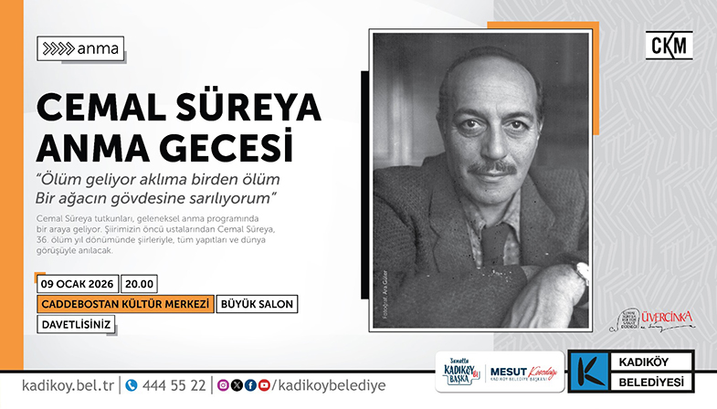 Cemal Süreya tutkunları, geleneksel anma programında bir araya geliyor. Şiirimizin öncü ustalarından Cemal Süreya, 36. ölüm yıldönümünde şiirleriyle, tüm yapıtları ve dünya görüşüyle anılacak.