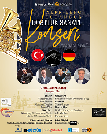 İstanbul Büyükşehir Belediyesi Kültür Dairesi Başkanlığı (İBB Kültür), İstanbul Şişli Rotary Kulübü ve Kadıköy Belediyesi’nin desteği ile 6 Kasım 2025 Perşembe akşamı saat 20.30’da Caddebostan Kültür Merkezi’nde gerçekleşecek “Nürnberg – İstanbul Dostluk Sanatı Konseri”, Türkiye ve Almanya’dan sanatçıları, aynı sahnede, dostluk sanatı özeni ile buluşturuyor.